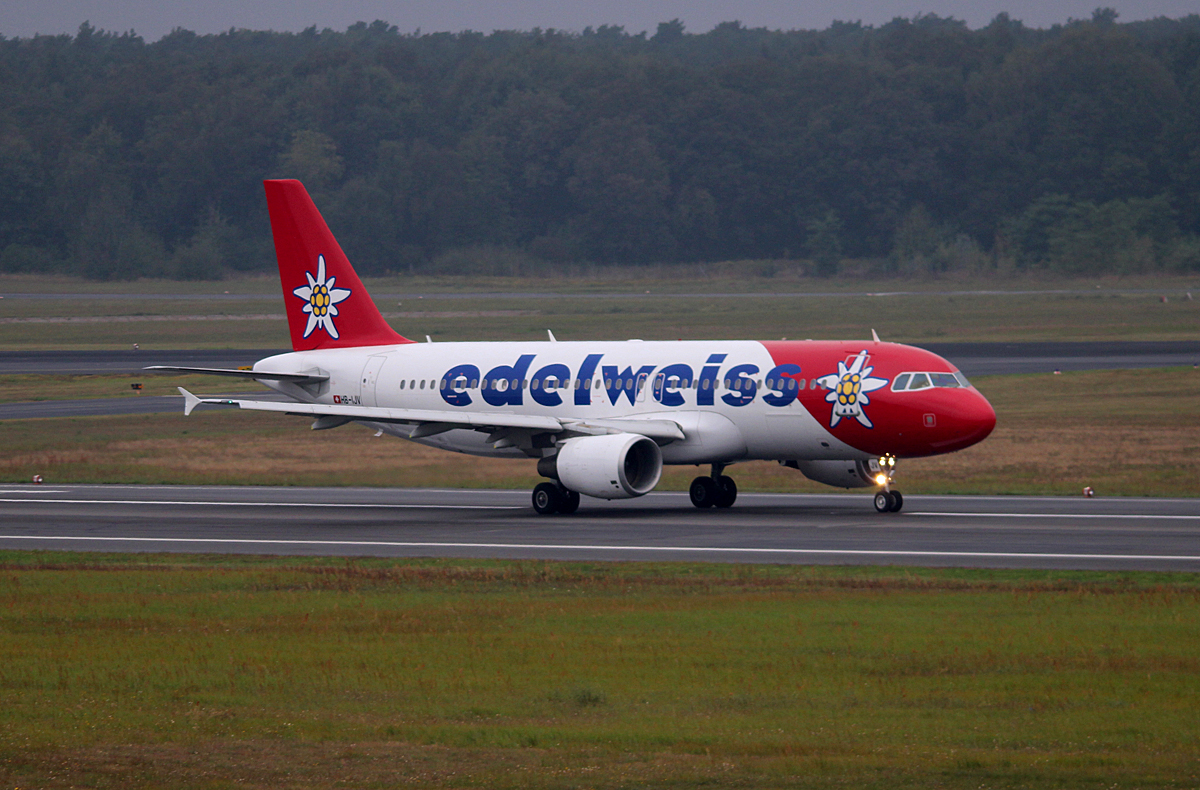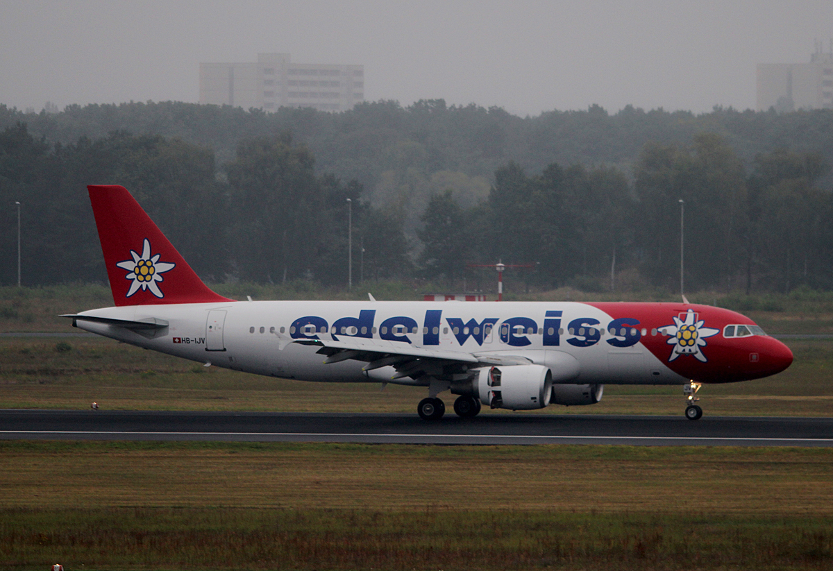 Edelweiss Air A 320-214 HB-IJV nach der Landung in Berlin-Tegel am 13.09.2014
