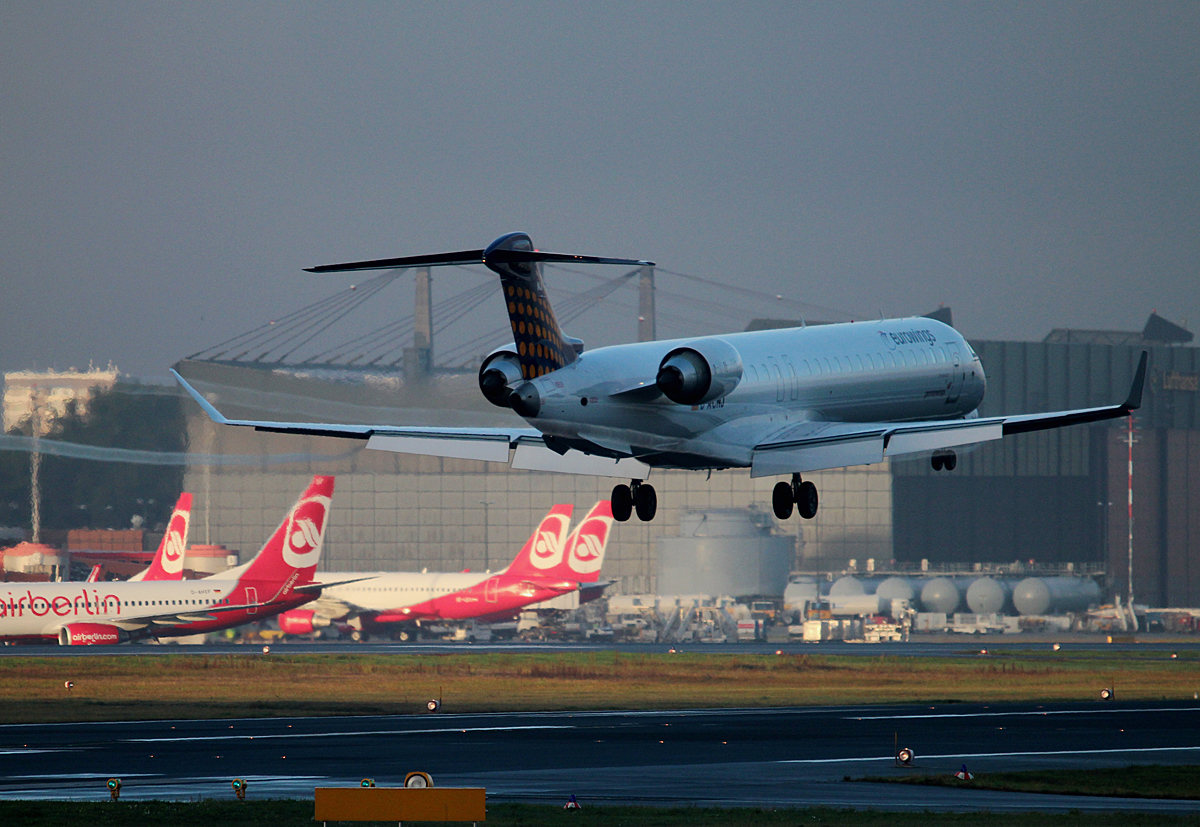 Eurowings CRJ900ER D-ACNJ bei der Landung in Berlin-Tegel am 27.09.2014