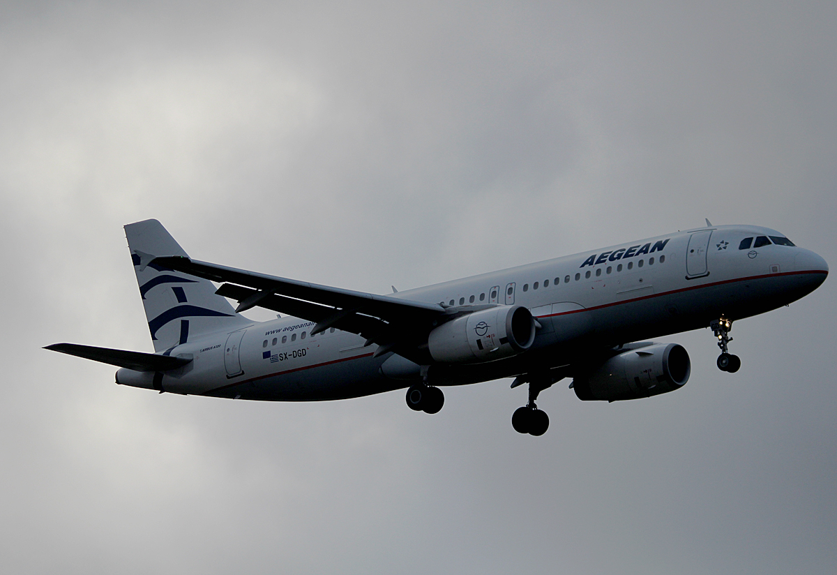 Aegean A 320-232 SX-DGD bei der Landung in Berlin-Tegel am 27.09.2014