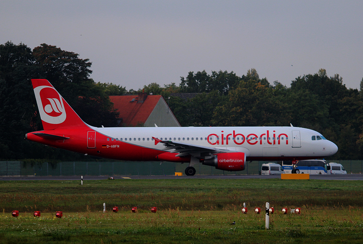 Air Berlin A 320-214 D-ABFN kurz vor dem Start in Berlin-Tegel am 27.09.2014