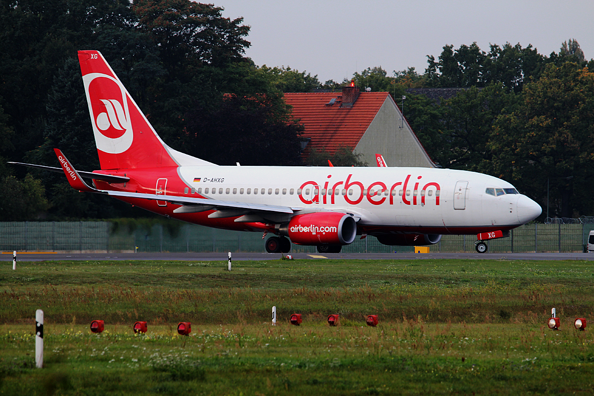 Air Berlin B 737-7K5 D-AHXG kurz vor dem Start in Berlin-Tegel am 27.09.2014