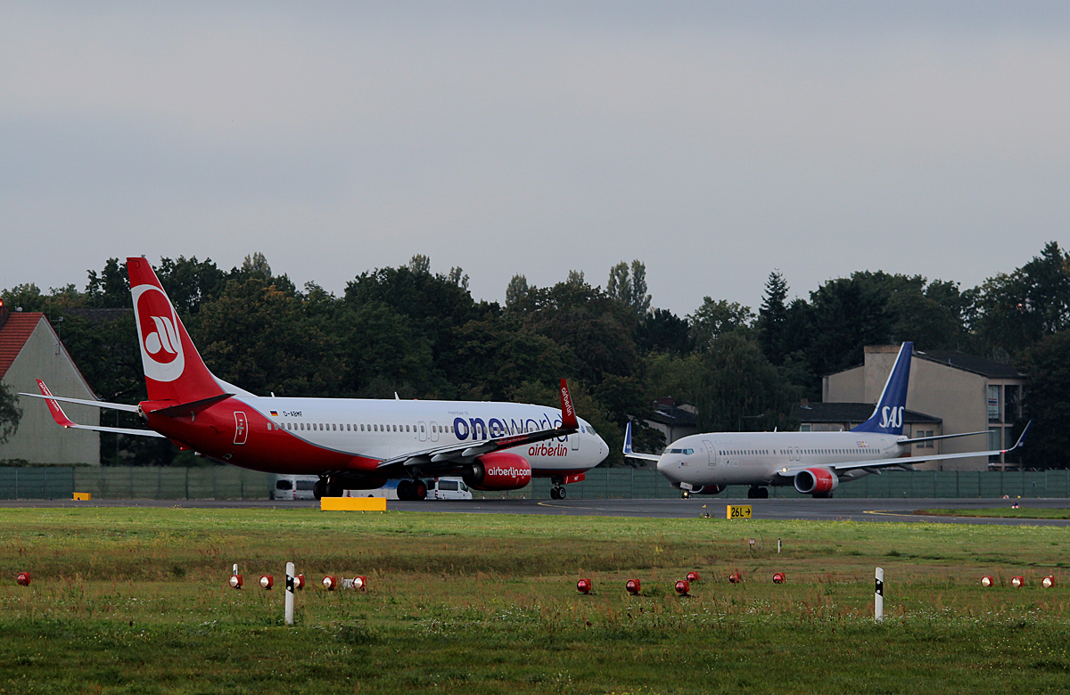Air Berlin B 737-86J D-ABMF und SAS B 737-86N LN-RGD am 27.09.2014 auf dem Flughafen Berlin-Tegel