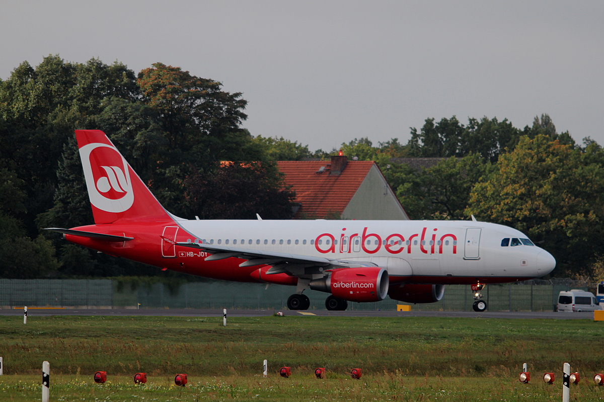 Air Berlin(Belair) A 319-112 HB-JOY kurz vor dem Start in Berlin-Tegel am 27.09.2014
