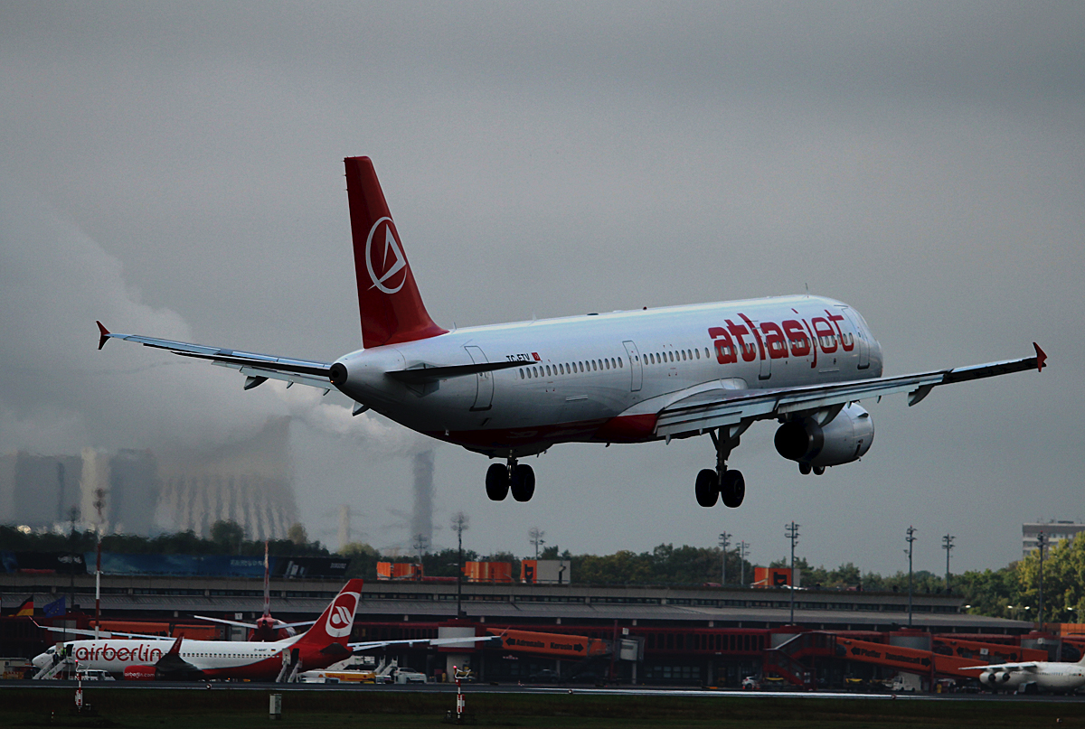 Atlasjet A 321-231 TC-ETV bei der Landung in Berlin-Tegel am 27.09.2014