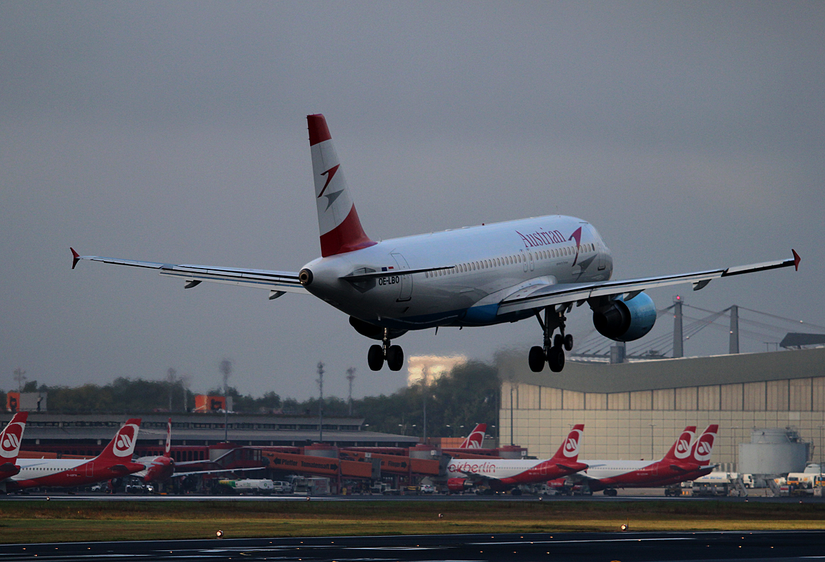 Austrian Airlines A 320-214 OE-LBO bei der Landung in Berlin-Tegel am 27.09.2014