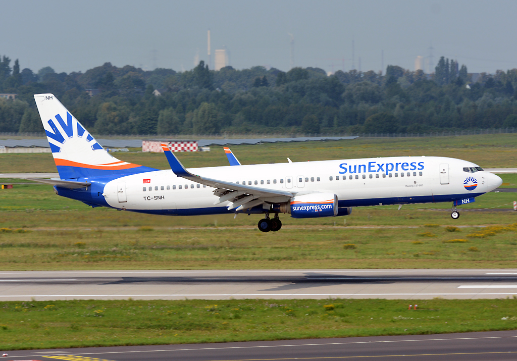 B 737-800 Sun Express, TC-SNH kurz vor der Landung in DUS - 04.09.2014