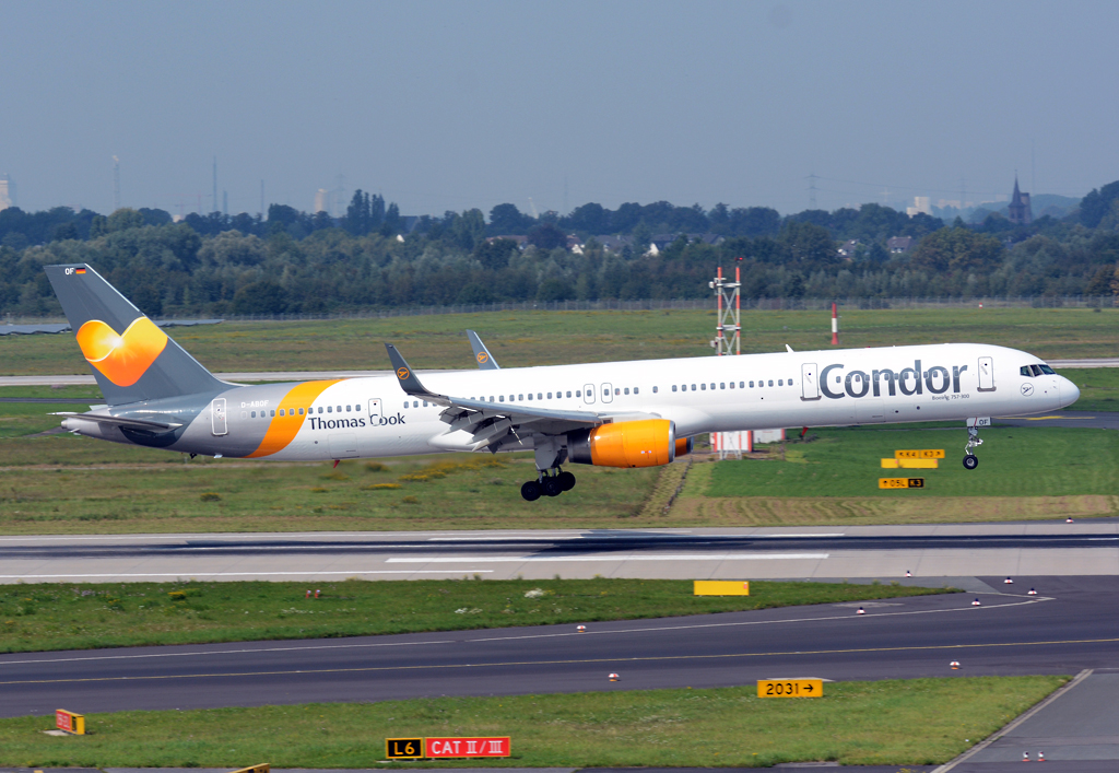 B 757-300 Condor, D-ABOF kurz vor dem Aufsetzen in Düsseldorf - 04.09.2014