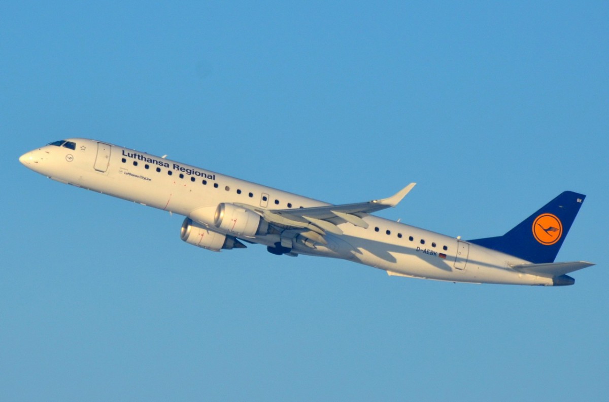 D-AEBK Lufthansa CityLine Embraer ERJ-195LR (ERJ-190-200 LR) gestartet am 01.01.2015 in München