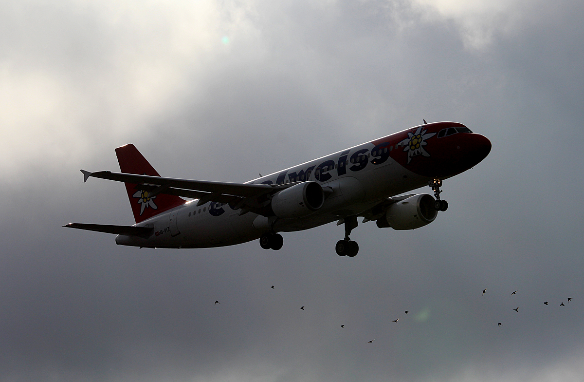 Edelweiss Air A 320-214 HB-IHZ bei der Landung in Berlin-Tegel am 27.09.214