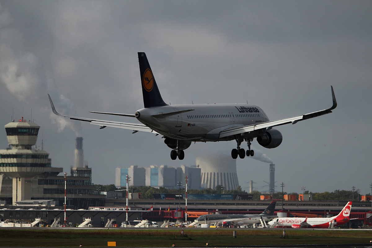 Lufthansa A 320-214 D-AIUH bei der Landung in Berlin-Tegel am 27.09.2014