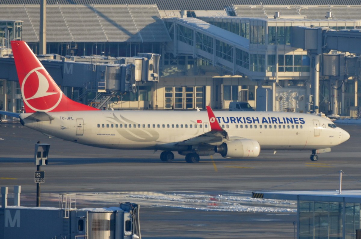 TC-JFL Turkish Airlines Boeing 737-8F2(WL) "ORDU" zum Start am 01.01.2015 in München