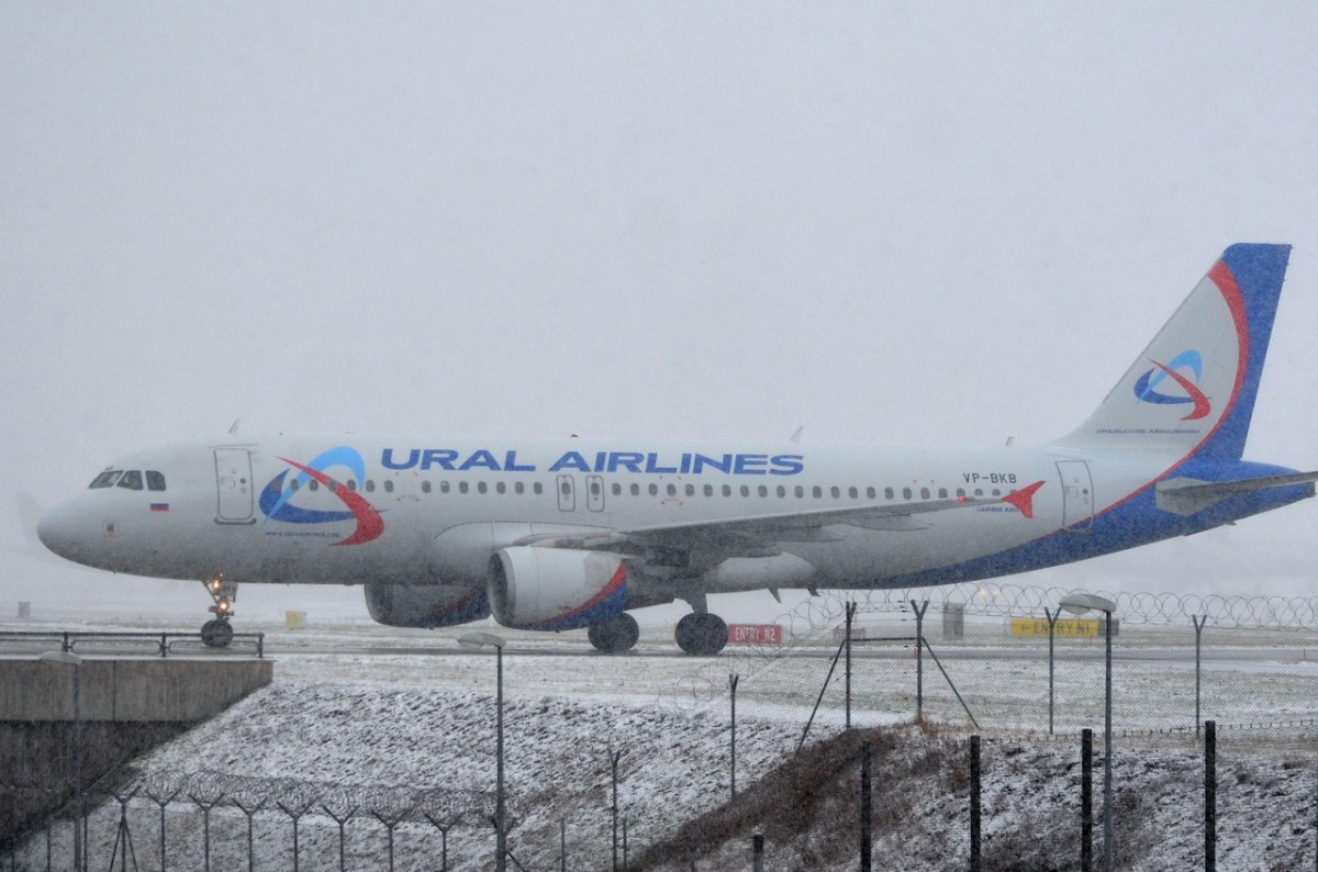VP-BKB Ural Airlines Airbus A320-214 zum Gate am 27.12.2014 in München