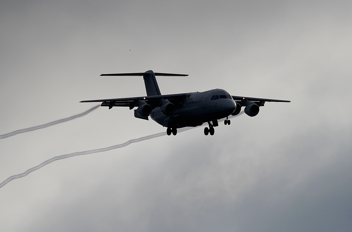 WDL Aviation BAe-146-300 D-AWBA bei der Landung in Berlin-Tegel am 27.09.2014