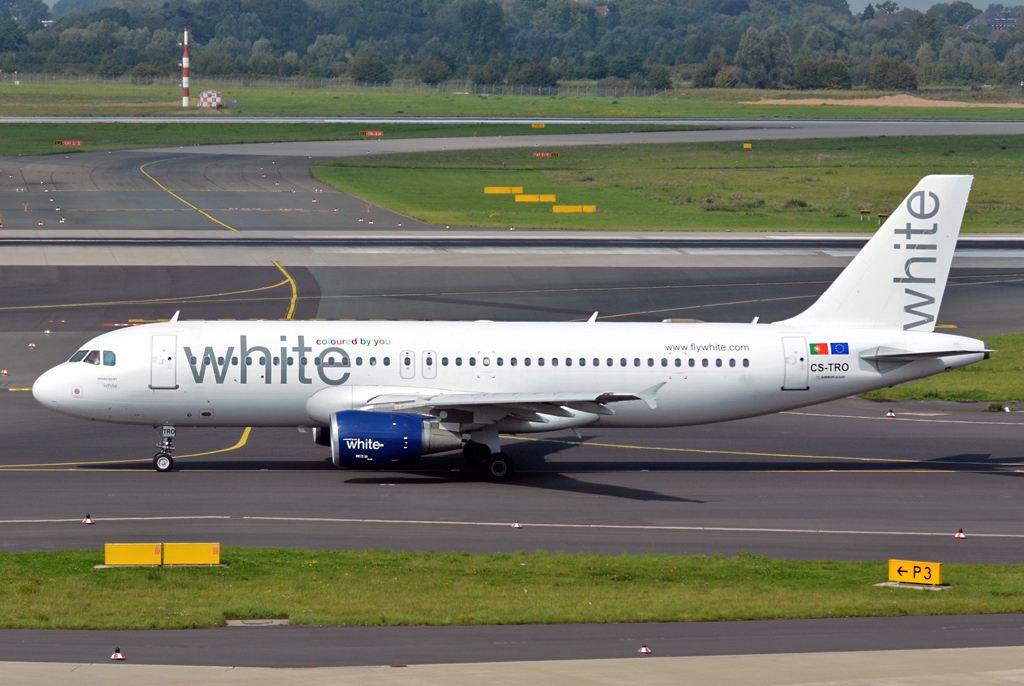 A 320-214 "White", CS-TRO rollt zur Startbahn in DUS - 04.09.2014