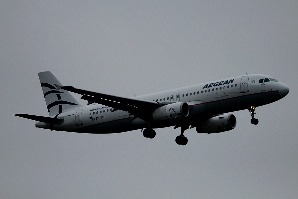 Aegean A 320-232 SX-DVG bei der Landung in Berlin-Tegel am 26.10.2014