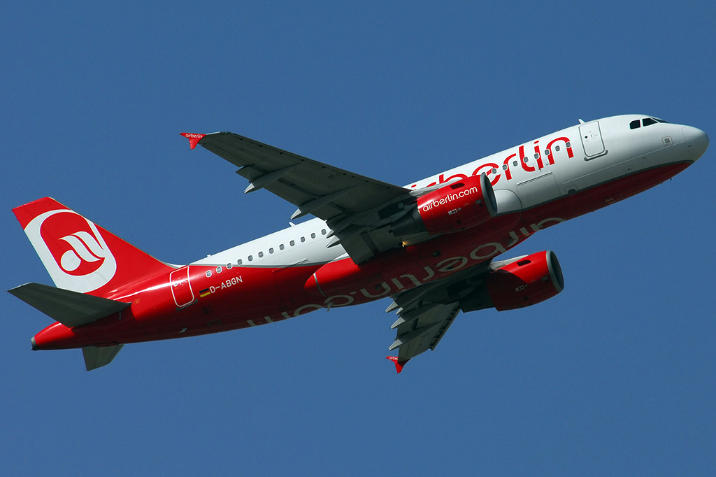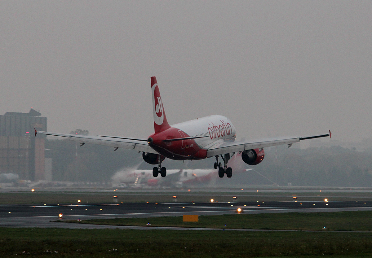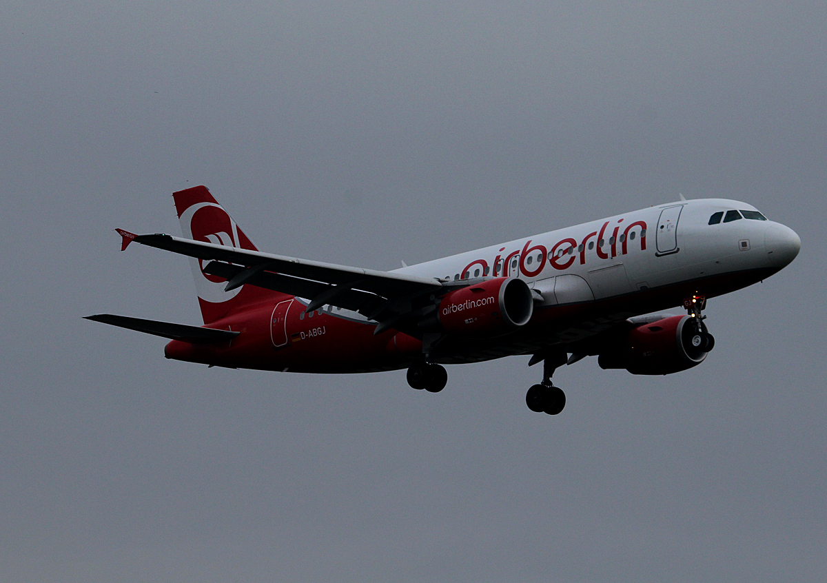 Air Berlin A 319-112 D-ABGJ bei der Landung in Berlin-Tegel am 26.10.2014