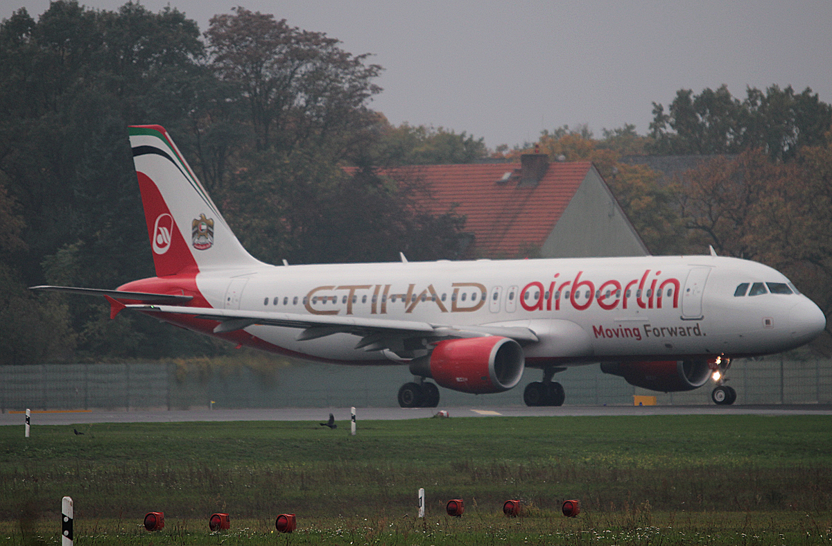 Air Berlin A 320-214 D-ABDU kurz vor dem Start in Berlin-Tegel am 26.10.2014