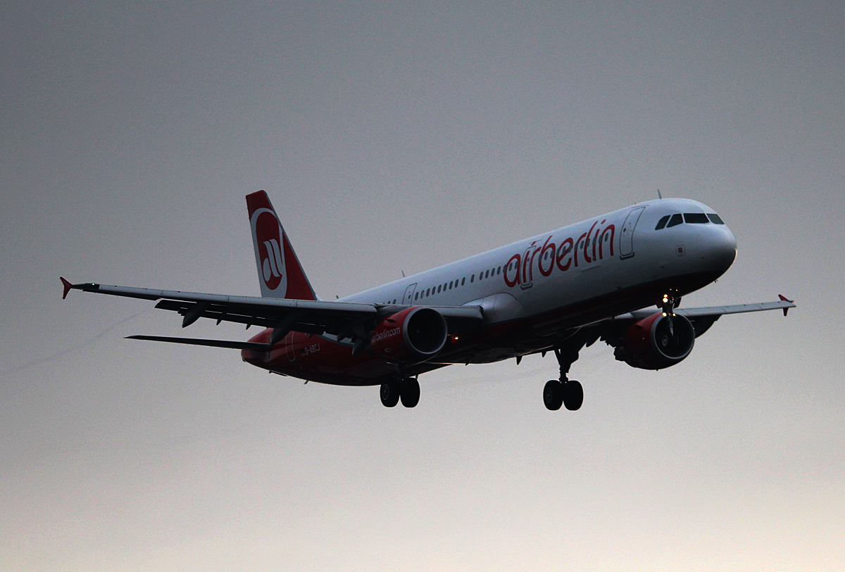 Air Berlin A 321-211 D-ABCJ bei der Landung in Berlin-Tegel am 26.10.2014