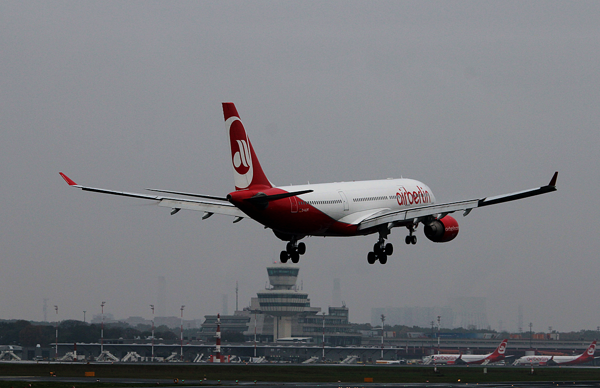 Air Berlin A 330-223 D-ALPF bei der Landung in Berlin-Tegel am 26.10.2014