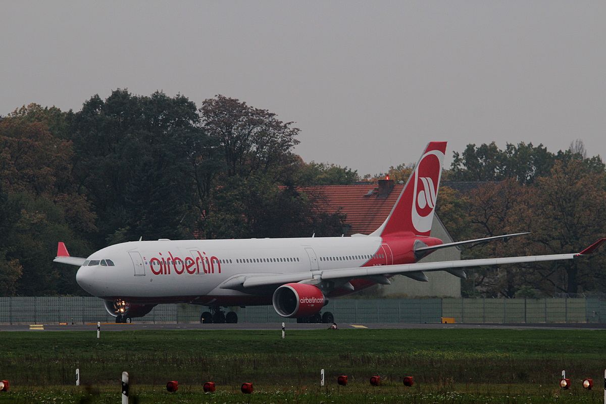 Air Berlin A 330-223 D-ALPH auf dem Weg zum Start in Berlin-Tegel am 26.10.2014