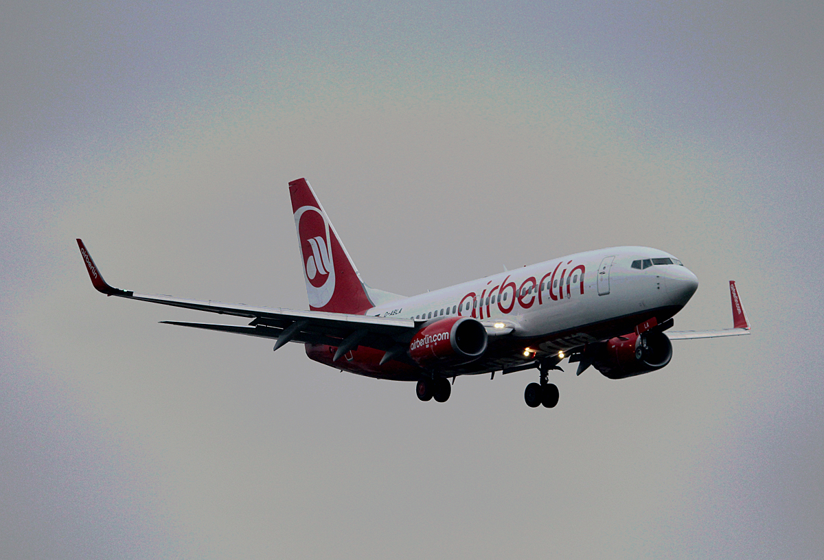 Air Berlin B 737-76J D-ABLA bei der Landung in Berlin-Tegel am 26.10.2014
