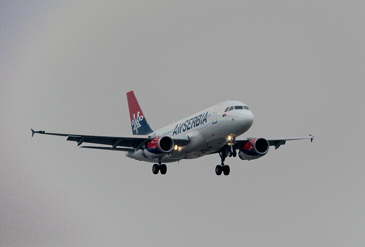 Air Serbia A 319-132 YU-APE bei der Landung in Berlin-Tegel am 26.10.2014