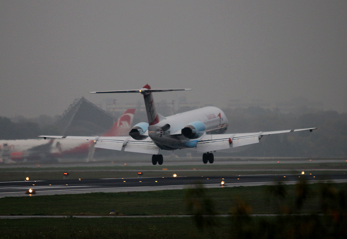 Austrian Airlines Fokker 100 OE-LVB bei der Landung in Berlin-Tegel am 26.10.2014