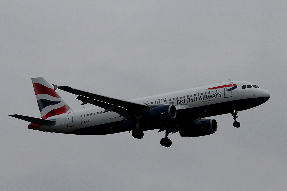 British Airways A 320-232 G-EUYS bei der Landung in Berlin-Tegel am 26.10.2014