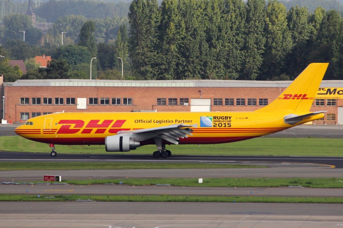 DHL (European Air Transport), D-AEAC, Airbus A300-622RF, msn: 602, 31.August 2014, BRU Brüssel, Belgien. Mit Sticker: Rugby World Cup 2015