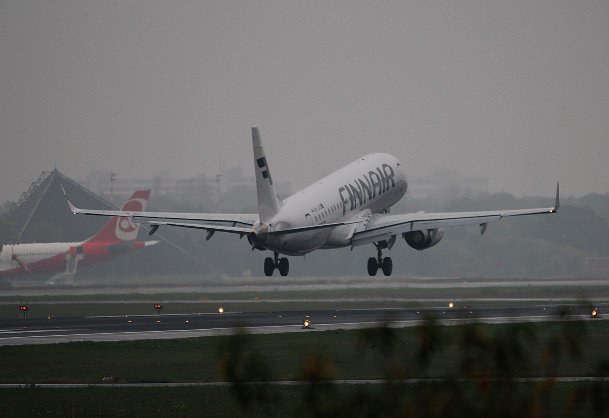 Finnair ERJ-190-100LR OH-LKG bei der Landung in Berlin-Tegel am 26.10.2014