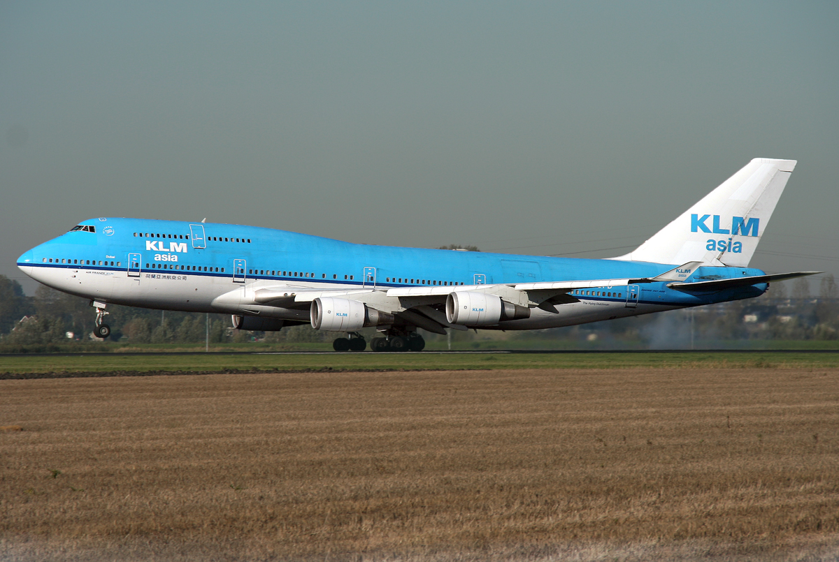 KLM Asia B747-400 PH-BFD beim Touchdown auf 18R in AMS / EHAM / Amsterdam am 15.10.2011