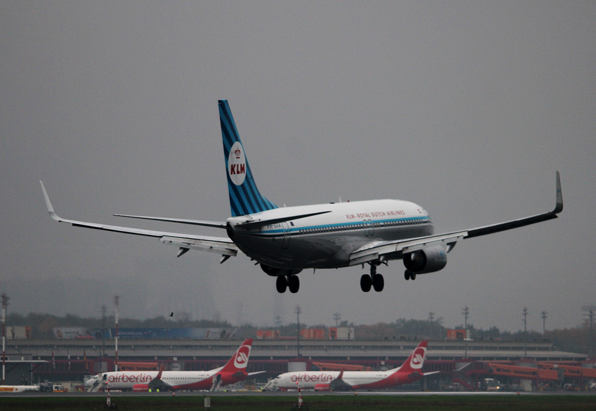 KLM B 737-8K2 PH-BXA bei der Landung in Berlin-Tegel am 26.10.2014