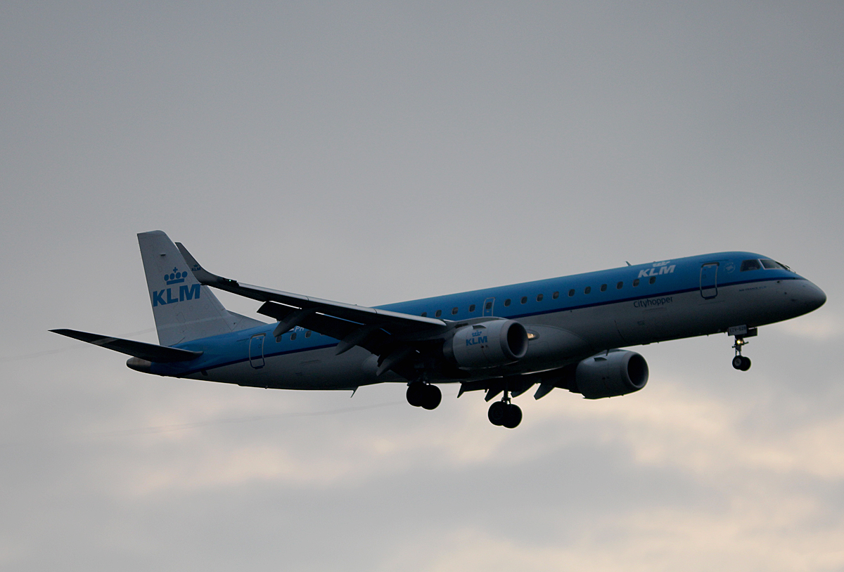 KLM-Cityhopper ERJ-190-100STD PH-EZV bei der Landung in Berlin-Tegel am 26.10.2014