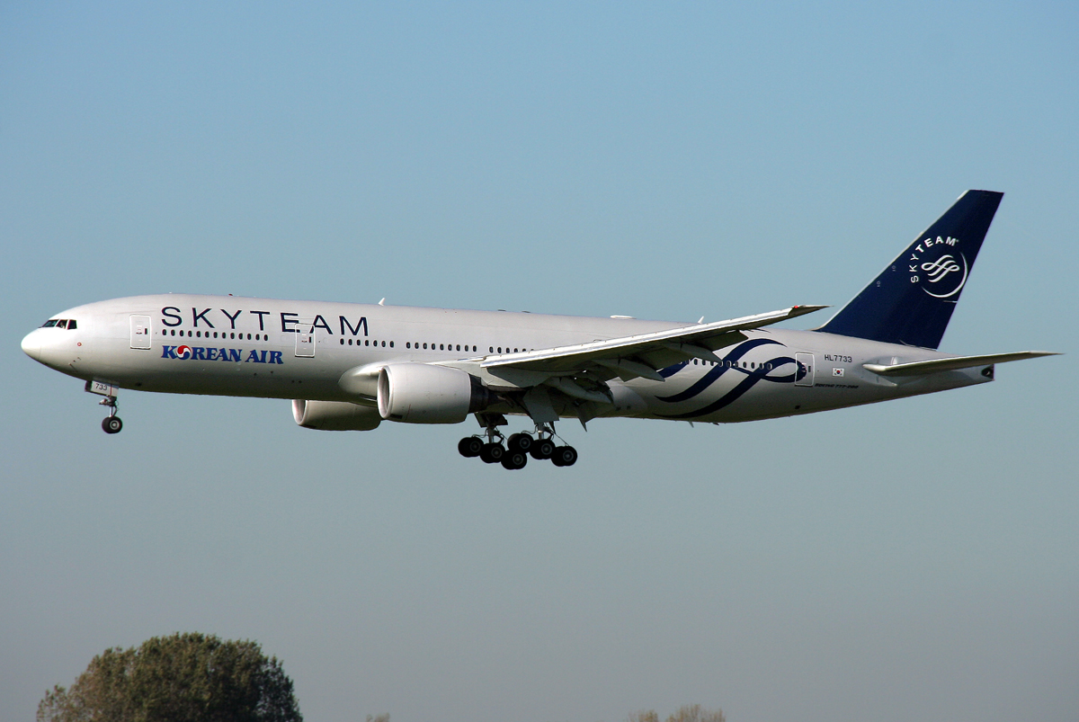 Korean Skyteam B777-200 HL7733 im Anflug auf 18C in AMS / EHAM / Amsterdam am 15.10.2011