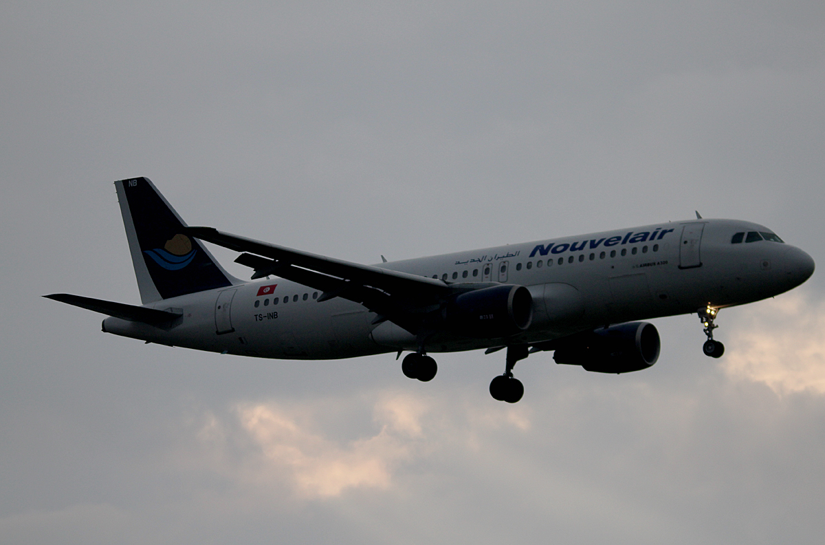 Nouvelair A 320-214 TS-INB bei der Landung in Berlin-Tegel am 26.10.2014