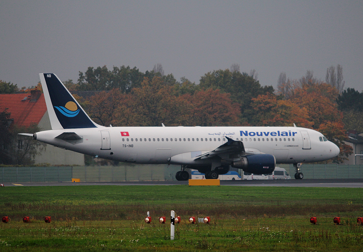 Nouvelair A 320-214 TS-INB kurz vor dem Start in Berlin-Tegel am 26.10.2014