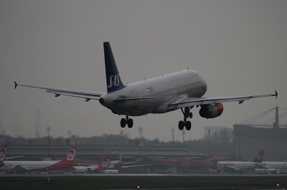 SAS A 320-232 OY-KAN bei der Landung in Berlin-Tegel am 26.10.2014