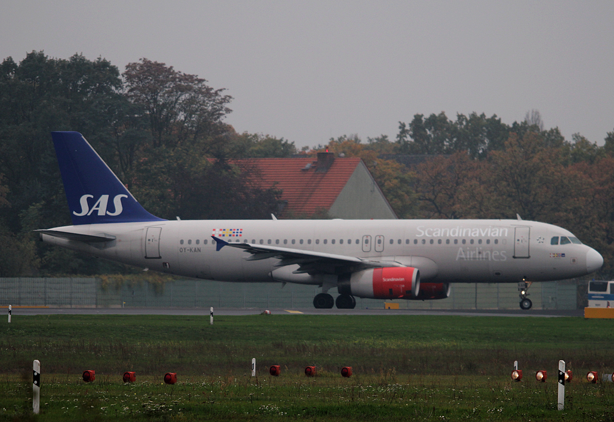 SAS A 320-232 OY-KAN kurz vor dem Start in Berlin-Tegel am 26.10.2014