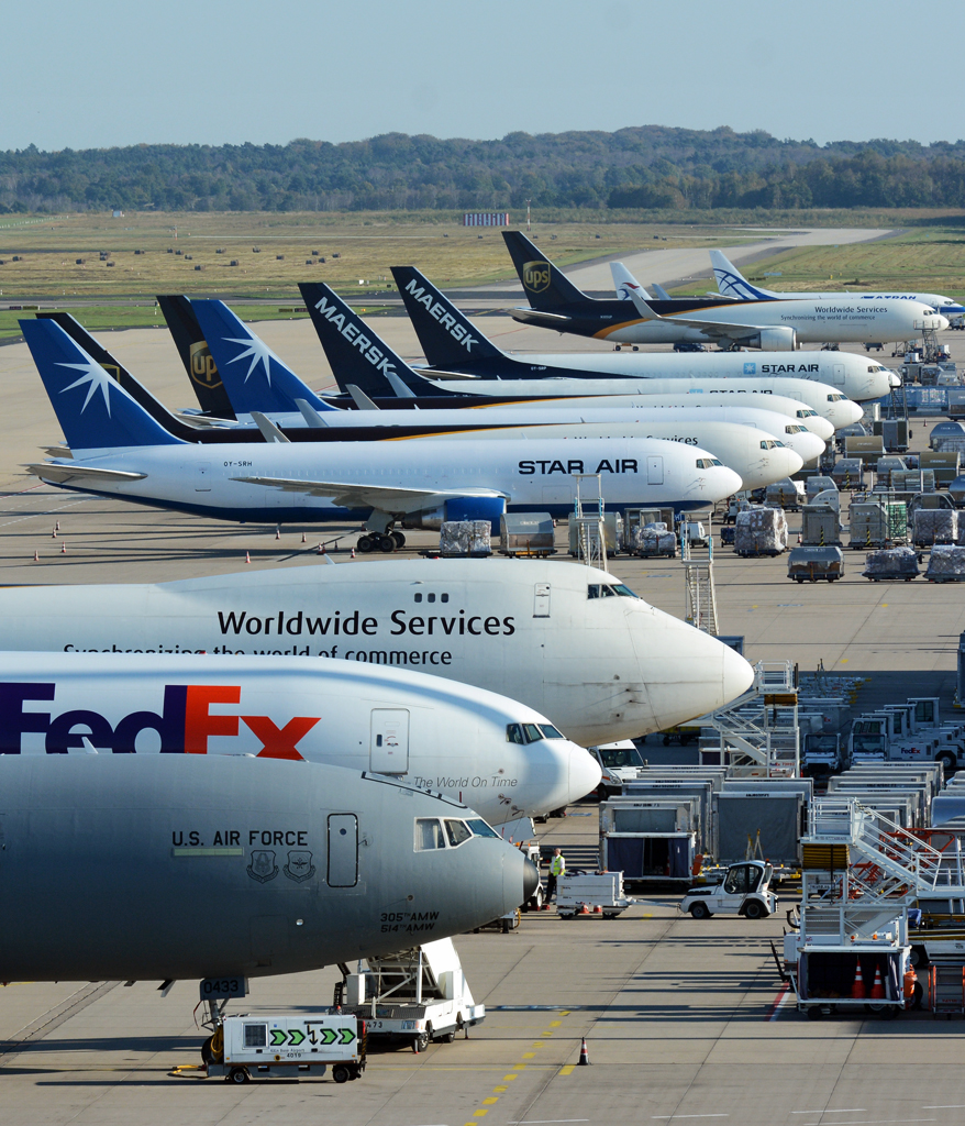 Frachterlinie am Flughafen Köln-Bonn mit MDD KC-10 USAF, Boeing 747 und 767 - 19.10.2014