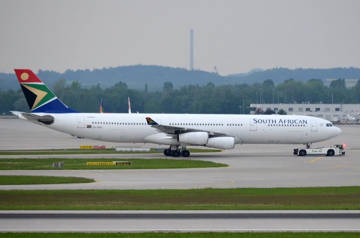 ZS-SXE South African Airways Airbus A340-313 zum Gate in München am 14.05.2015