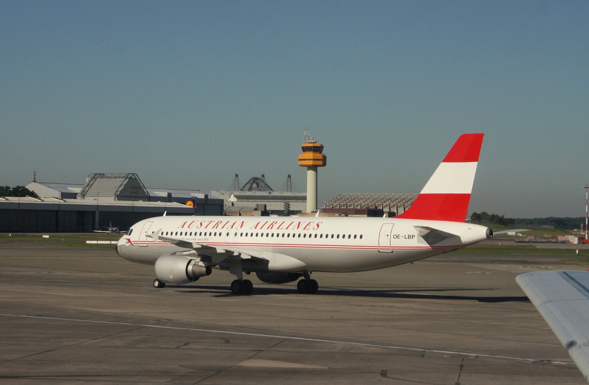 OE-LBU Austrian Airlines Airbus A320-214 am 14.05.2015 in München vor der Landung