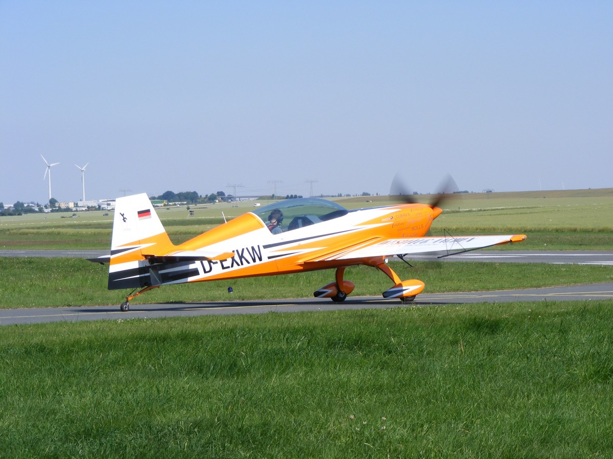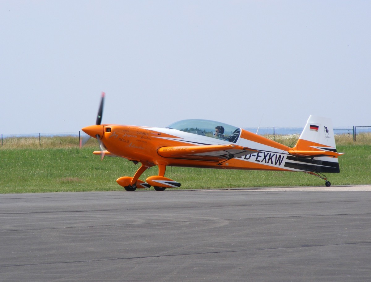 Extra 330 SC, D-EXHH,der neue Deutsche Meister im Motorkunstflug Hein Sauels auf dem Weg zur Parkposition in Gera (EDAJ), 4.7.2015