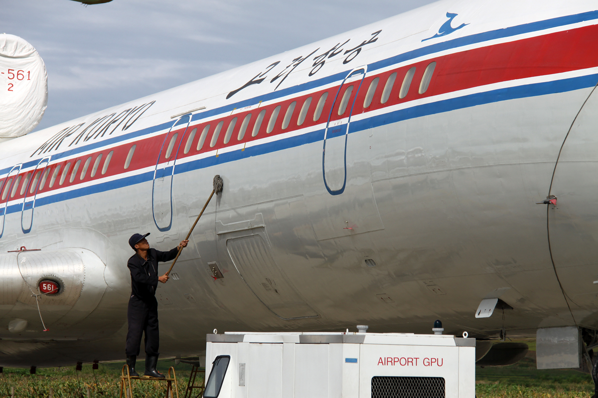 Handpflege der Air Koryo Tu-154 B-2 P-561 in FNJ / ZKPY / Pyongyang am 03.09.2014