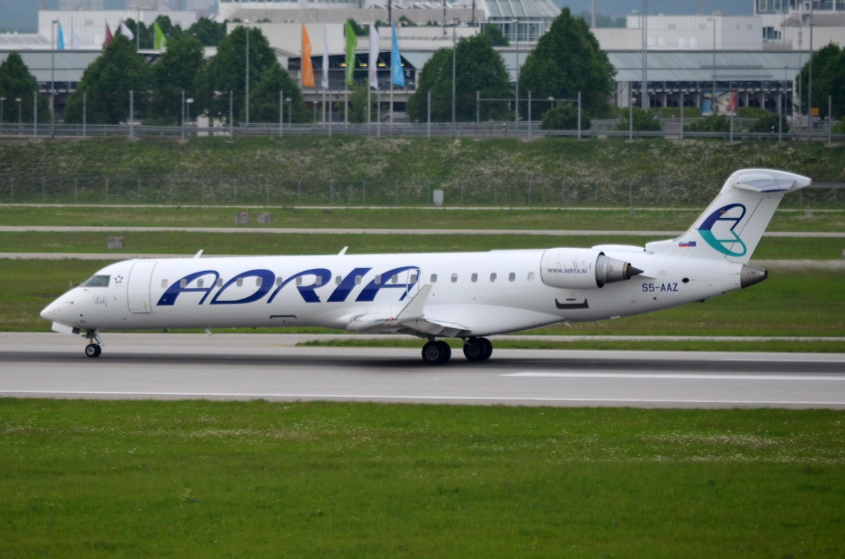 S5-AAZ Adria Airways Canadair CL-600-2C10 Regional Jet CRJ-701ER beim Start in Münche am 14.05.2015