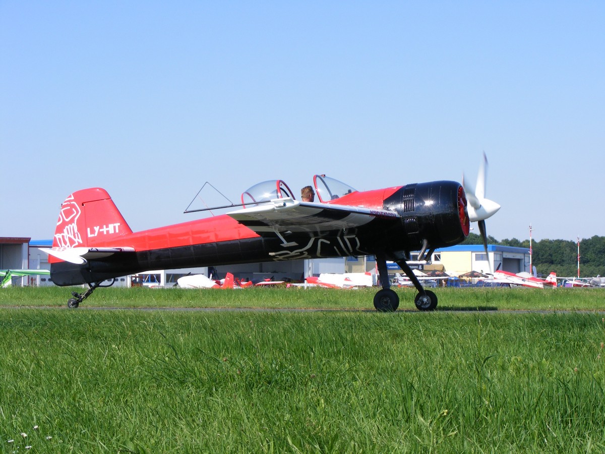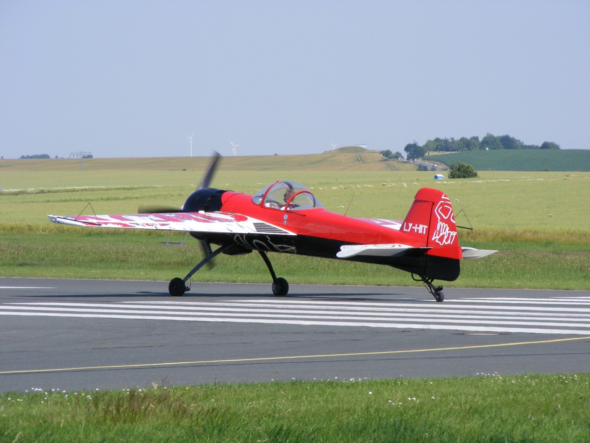 LY-HIT, Yak 55 in Startposition auf dem Flugplatz Gera (EDAJ) am 2.7.2015