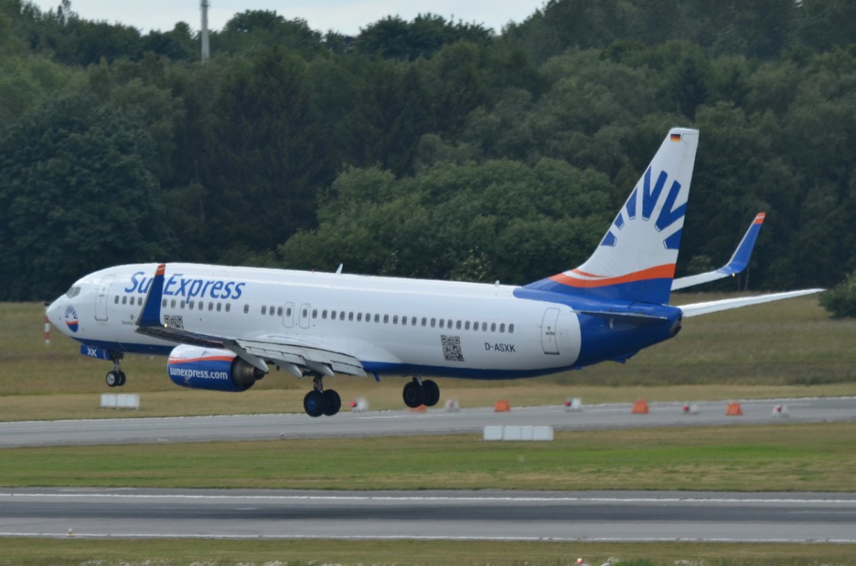 D-ASXK SunExpress Germany Boeing 737-86J(WL) bei der Landung am 15.06.2015 in Hamburg