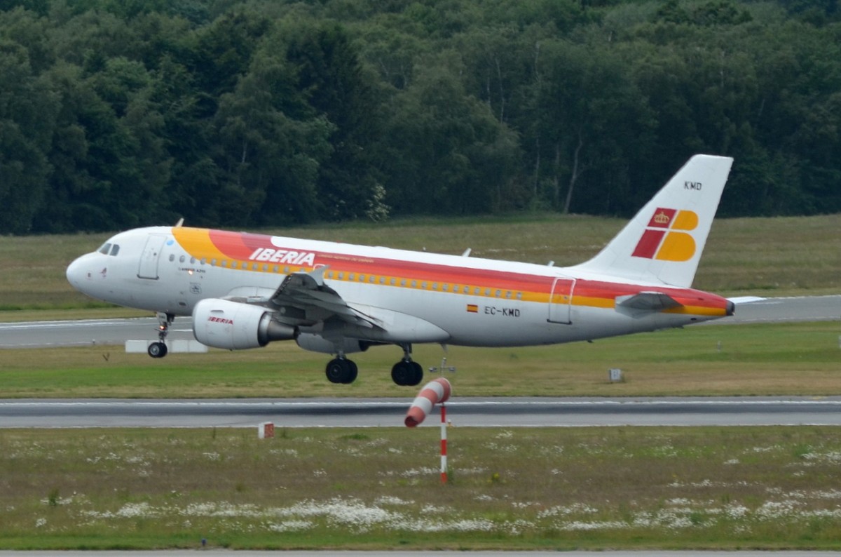 EC-KMD Iberia Airbus A319-111 bei der Landung in Hamburg am 15.06.2015