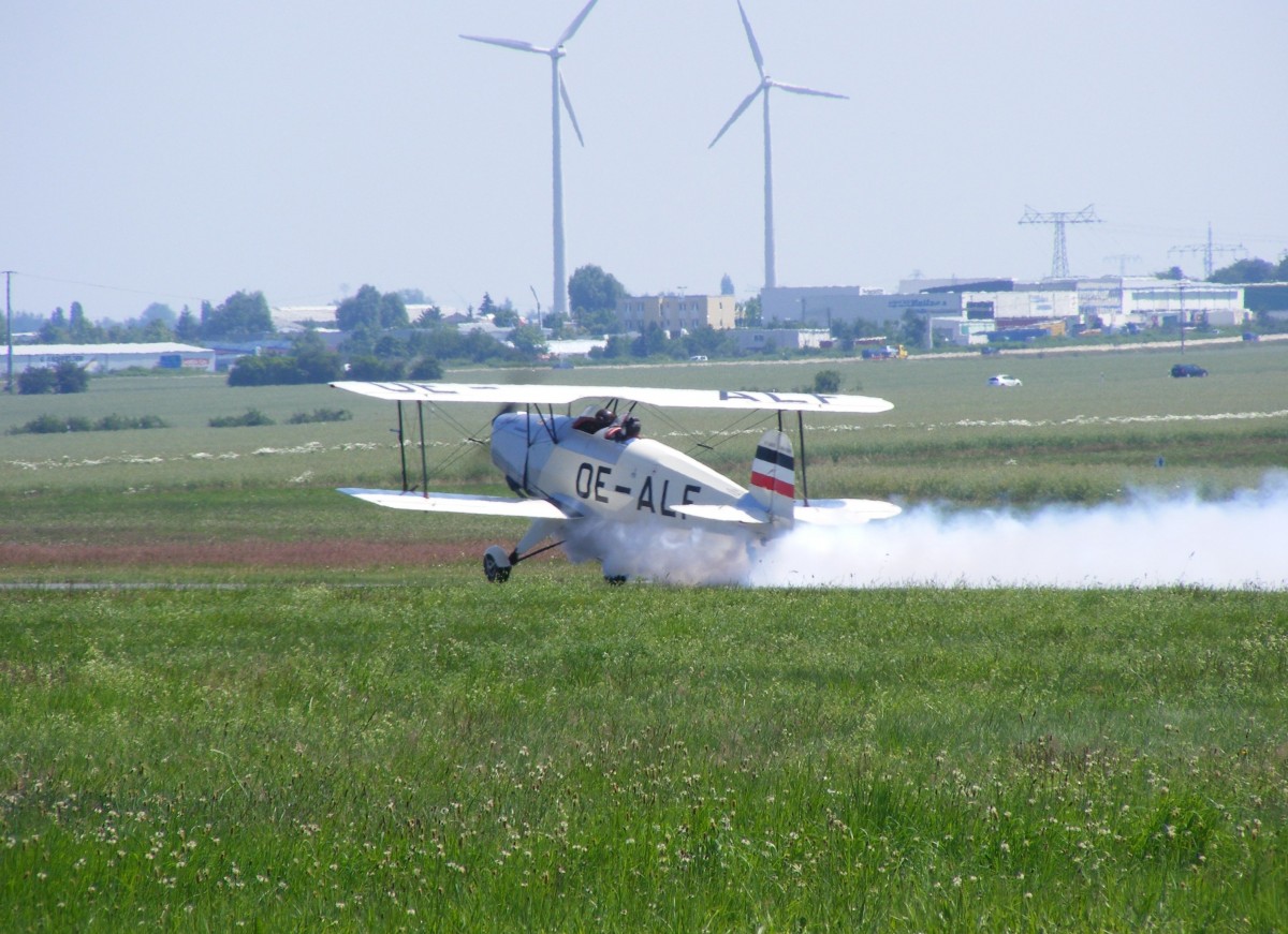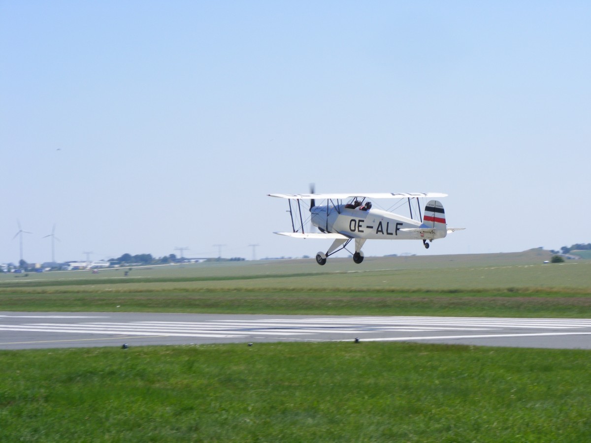 OE-ALF, Bücker Bü-131 Jungmann bei der Landung in Gera (EDAJ) am 2.7.2015