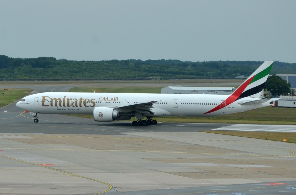 A6-EGE Emirates Boeing 777-31H(ER) beim Start in Hamburg am 17.06.2015