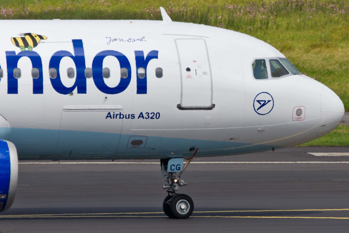Condor (DE-CFG), D-AICG, Airbus, A 320-212 (Janosch-St. & Misch-Lkrg.), 27.06.2015, DUS-EDDL, Düsseldorf, Germany
